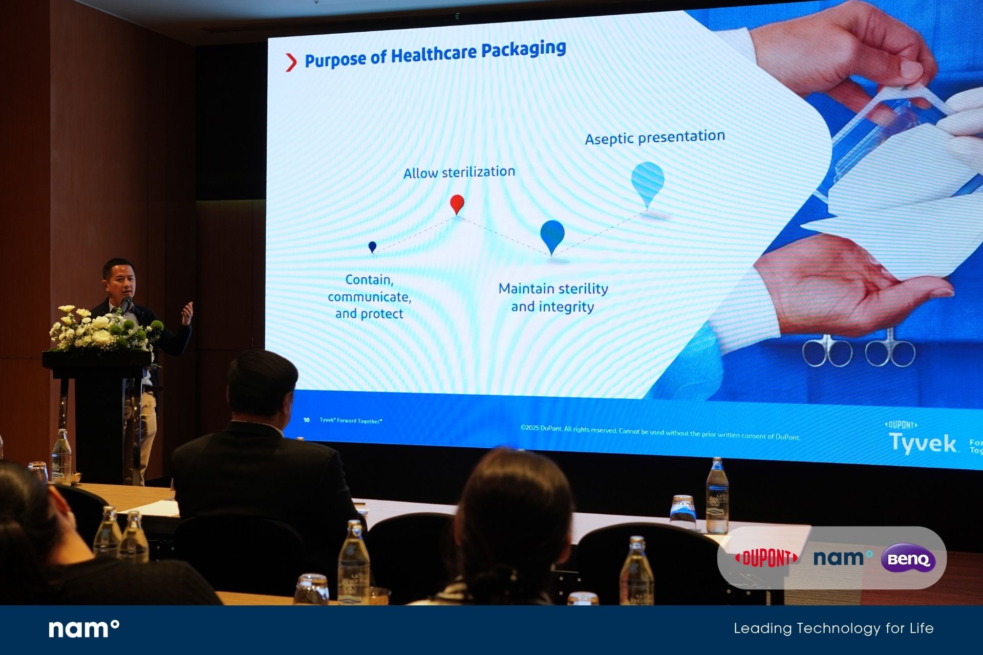 ในวันนี้นำวิวัฒน์ ร่วมกับ DuPont และ BenQ Materials พันธมิตรระดับโลกในการขับเคลื่อนนวัตกรรมด้านวัสดุและเทคโนโลยี เพื่อพัฒนาโซลูชันที่ตอบโจทย์ทั้งด้านคุณภาพ ความยั่งยืน และความปลอดภัยของกระบวนการทำให้ปราศจากเชื้อ จึงเกิดงานสัมมนาในวันนี้ ภายใต้หัวข้อ “Safe and Sustainable Medical Packaging through Smart Materials and Rethinking Sterilization”